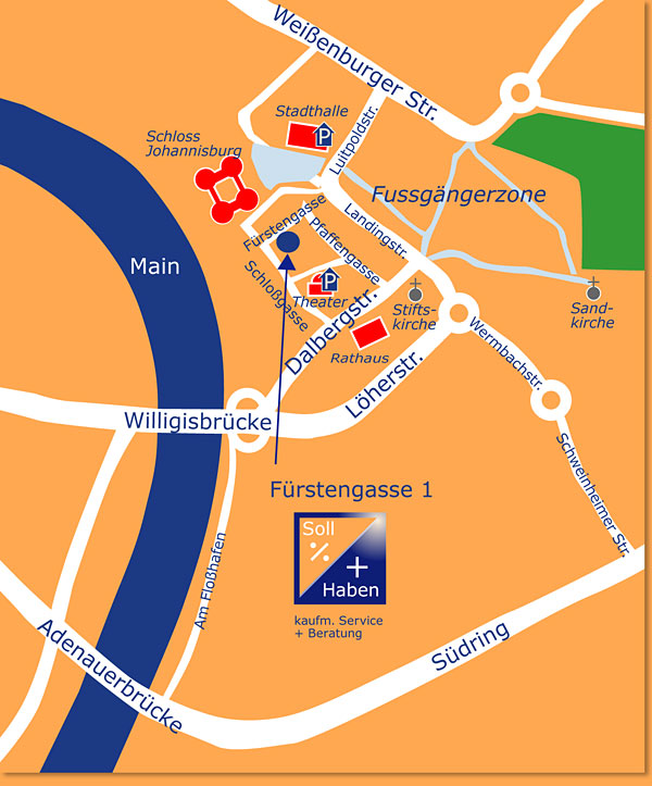 Ihr Weg zu Soll + Haben im Zentrum Aschaffenburgs: